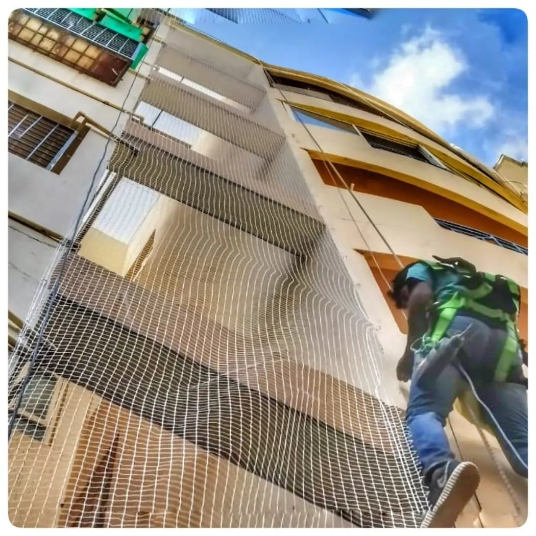 Heavy-duty bird nets suitable for societies and buildings to maintain hygiene and prevent bird entry in common areas.